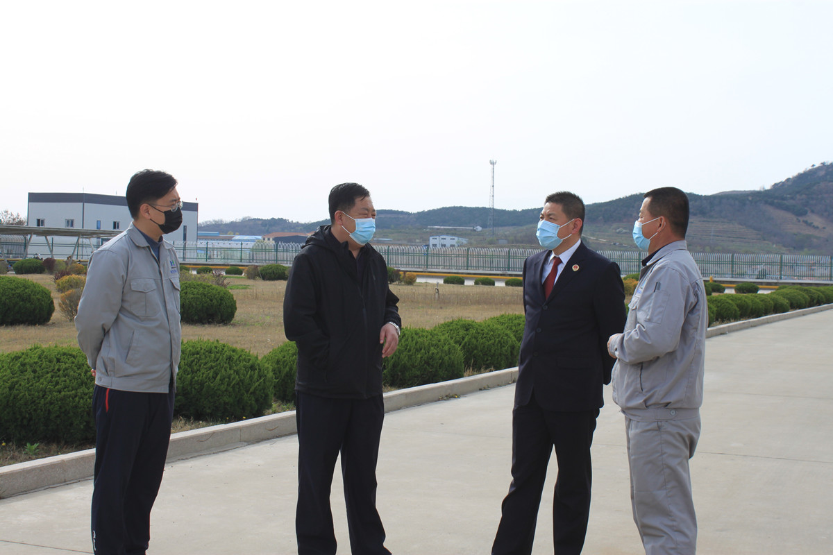 2022年4月13日下午,棲霞市應急管理局黨委書記、局長姜銳與棲霞市人民檢察院檢察長姜遠斌等一行8人來到煙臺核晶陶瓷新材料有限公司進行安全生產工作調研,核晶公司由董秘王永新、副總程波等一行5人陪同。